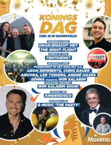 Zaterdag 25 april Oranjenacht. Dit jaar een nieuwe band op het programma: The Night Flight. Toegang gratis voor leden van Oranjevereniging Maxima. Tent open voor